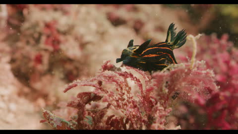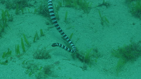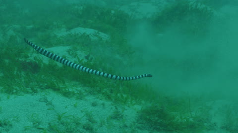 Blue-lipped Sea Krait Swims Through a Seagrass Meadow