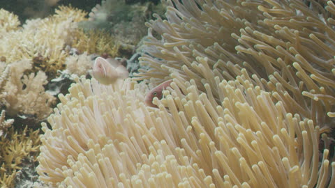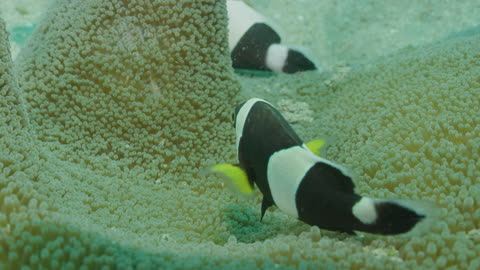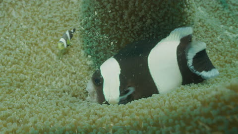 Common Clownfish Swim Through a Sea Anemone
