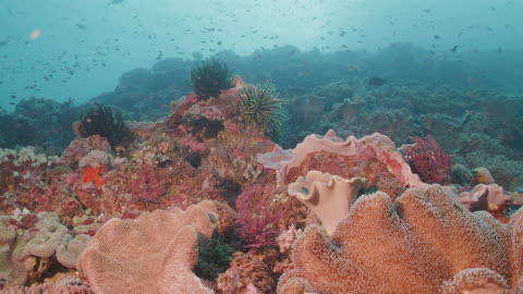Carpet Anemones and Feather Stars on a Coral Reef